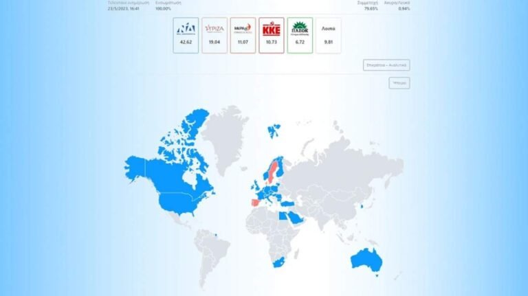 Εκλογές 2023: Πώς ψήφισαν οι Έλληνες του εξωτερικού – 42,62% για ΝΔ, 19,04% για ΣΥΡΙΖΑ